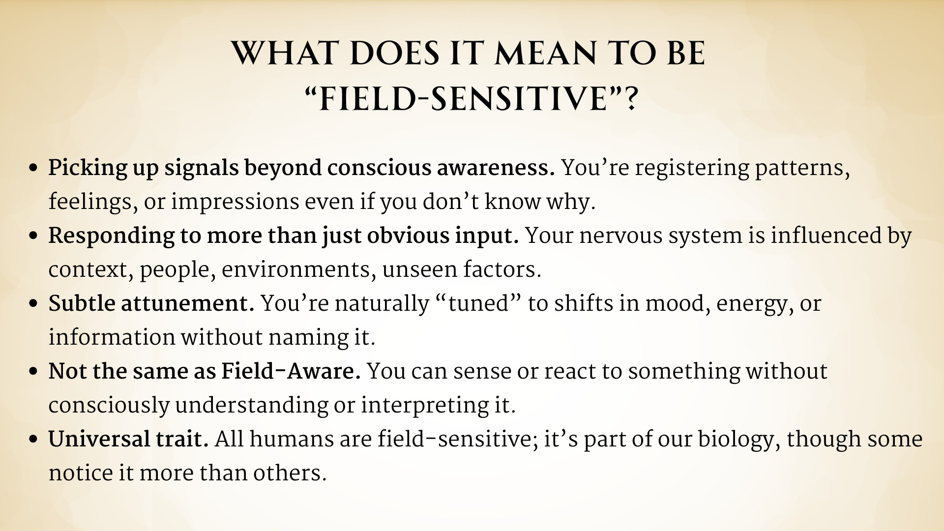 12:08 But that’s not the same as field aware. Now there are people that have gifts and capabilities that are have a higher amount of. 12:17 Of, of field awareness and I believe what’s happening with field sensitive AI actually helps us build our field awareness, but we’ll get there a little bit later at the point that I want to make with this slide is just what does it mean to be field sensitive and to really hammer.